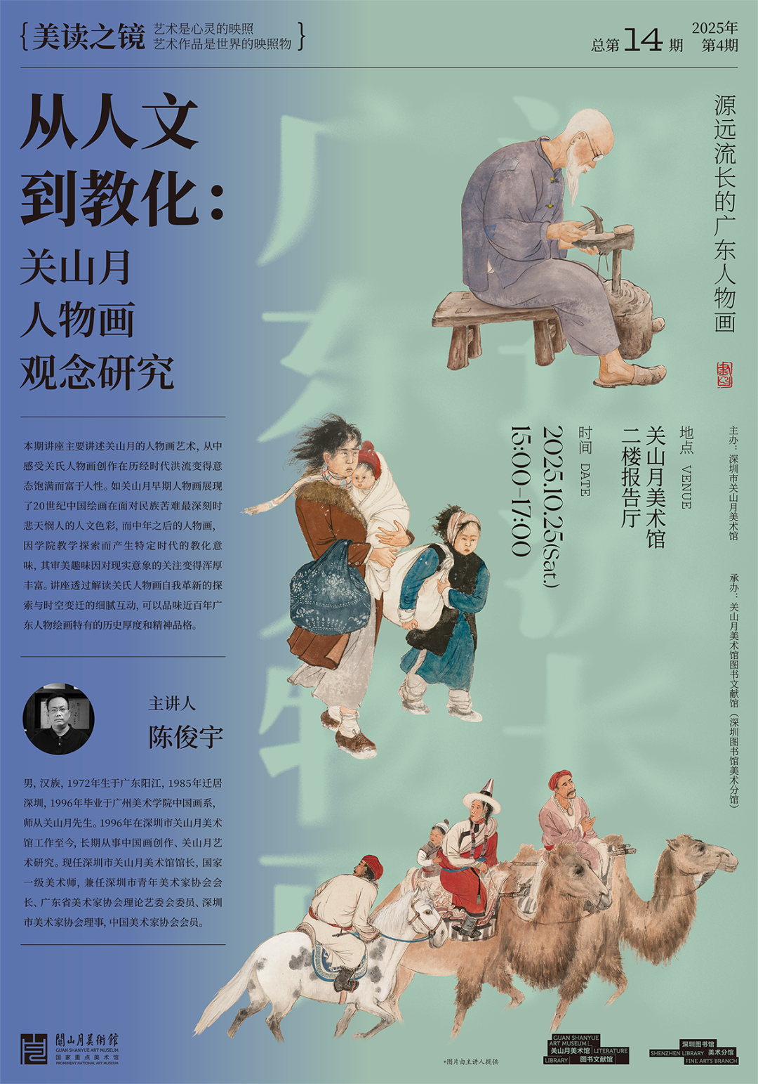 On October 25th, the "Mirror of Beauty Reading" series of lectures will hold its fourth session in 2025. Mr. Chen Junyu, the director of the Guanshanyue Art Museum in Shenzhen, will lead the audience to experience the new development of Guangdong figure painting in the 20th century under the theme of "From Humanities to Education: Research on Guanshanyue Figure Painting Concepts".