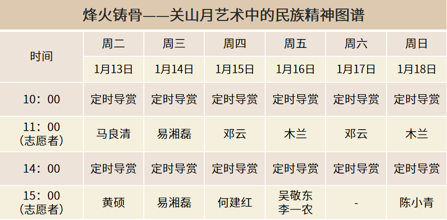 本周免费导赏服务安排